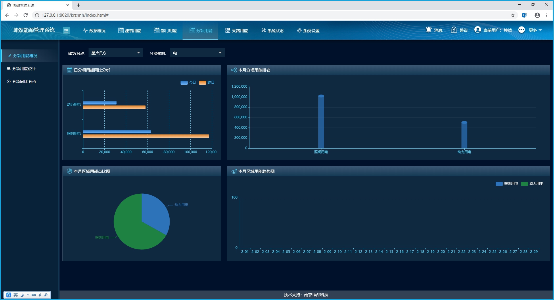 系統(tǒng)將電能消耗逐級分項,摸清電能的組成和流向;將電能使用情況分為照明插座用電、空調用電、動力用電、特殊用電,找到電能消耗重點,為節(jié)能改造提供數據依據。