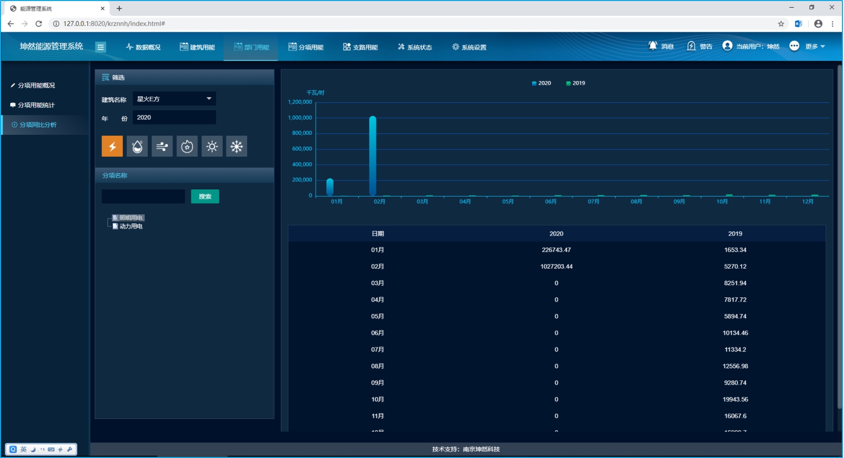 主要可以查看當前項目某一建筑的能耗總體分析數據