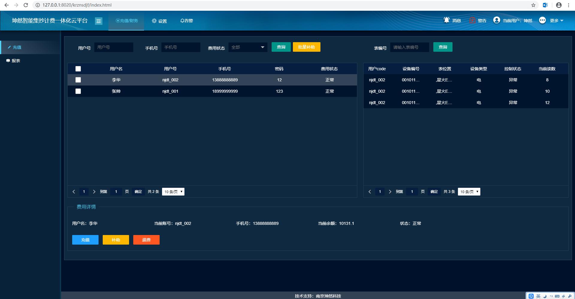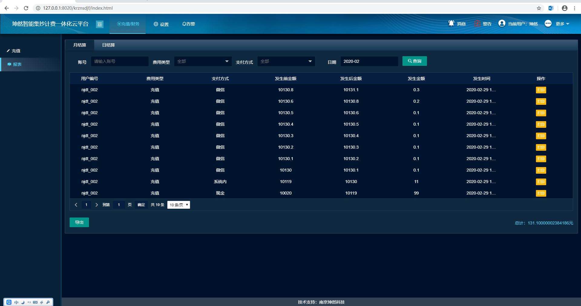 報表分析:可查看系用戶所有的充值繳費扣費記錄。