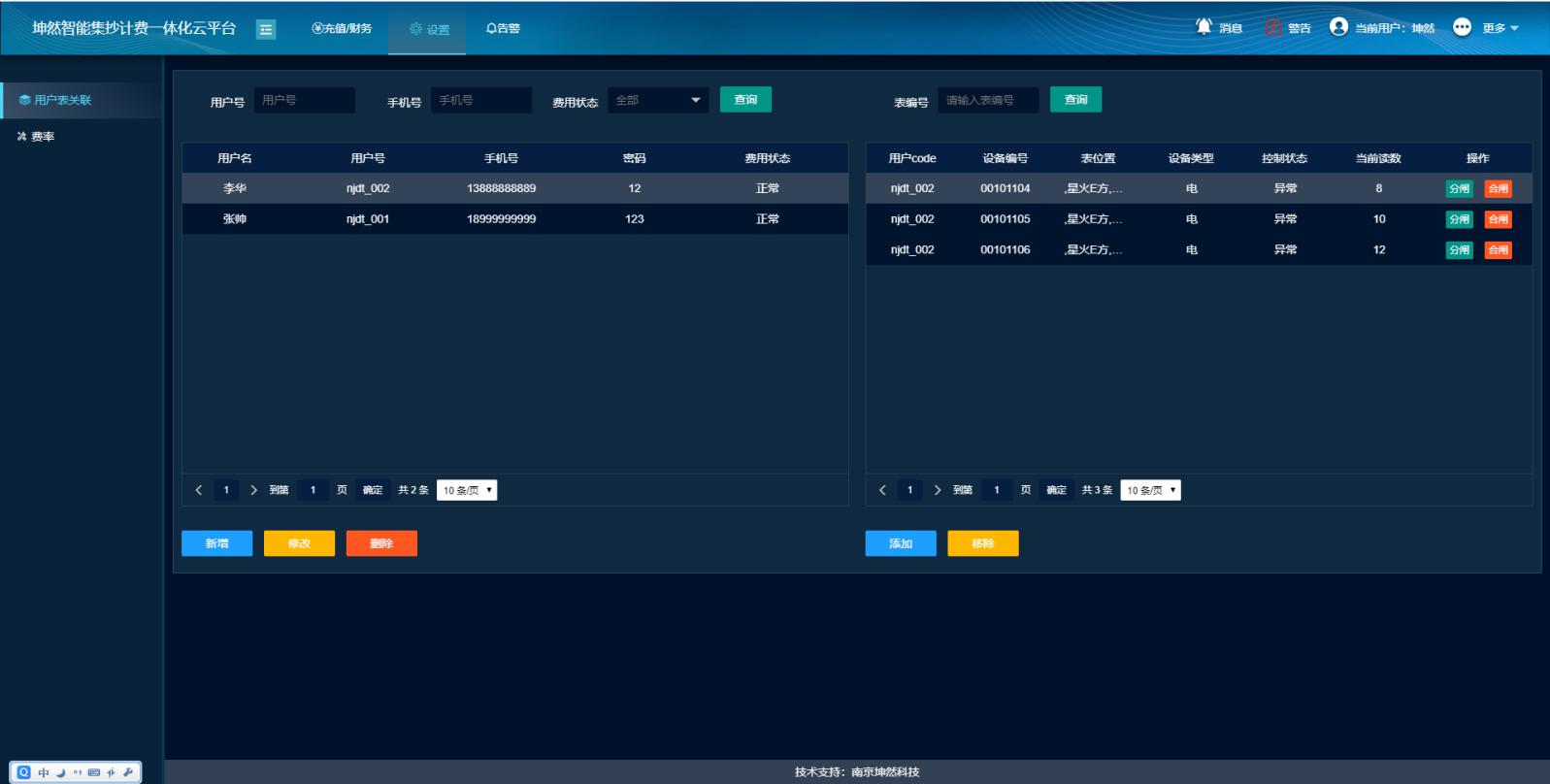 戶表設(shè)置:一戶多表,統(tǒng)一扣費,方便系統(tǒng)用戶繳費充值,可對任意一塊表具進(jìn)行分合閘操作。